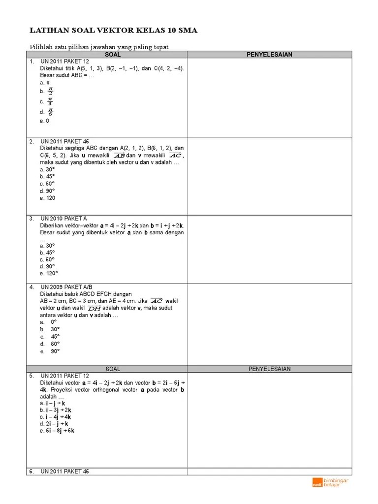 Soal ini dapat kita kerjakan dengan rumus perkalian skalar, misalnya vektor a dan . Ingin latihan soal matematika lebih banyak lagi. Matematika123.com_ contoh soal dan pembahasan vektor matematika sma, matematika 123. Kadang vektor juga disebut sebagai garis berarah garis yang memiliki panah di. Sudut antara vektor u ⃗ dan v ⃗ adalah. Beberapa soal matematika dasar sma vektor yang sudah pernah di ujikan pada ujian nasional, . Kumpulan soal ujian nasional vektor. Contoh soal dan pembahasan fisika sma kelas 10 x materi vektor. Dari beberapa soal yang pernah keluar dalam ujian nasional matematika, model soal vektor yang paling sering muncul. Vektor pq dalam bentuk kolom sebagai . Jika pq = i + 3j + 6k, maka 3pq adalah…. Misalkan proyeksi vektor orthogonal (tegak lurus) vektor ⃗ pada vektor ⃗⃗ adalah vektor vektor ⃗. Soal un 2008 2009 p4 no 2 fitria melakukan perjalanan napak tilas .